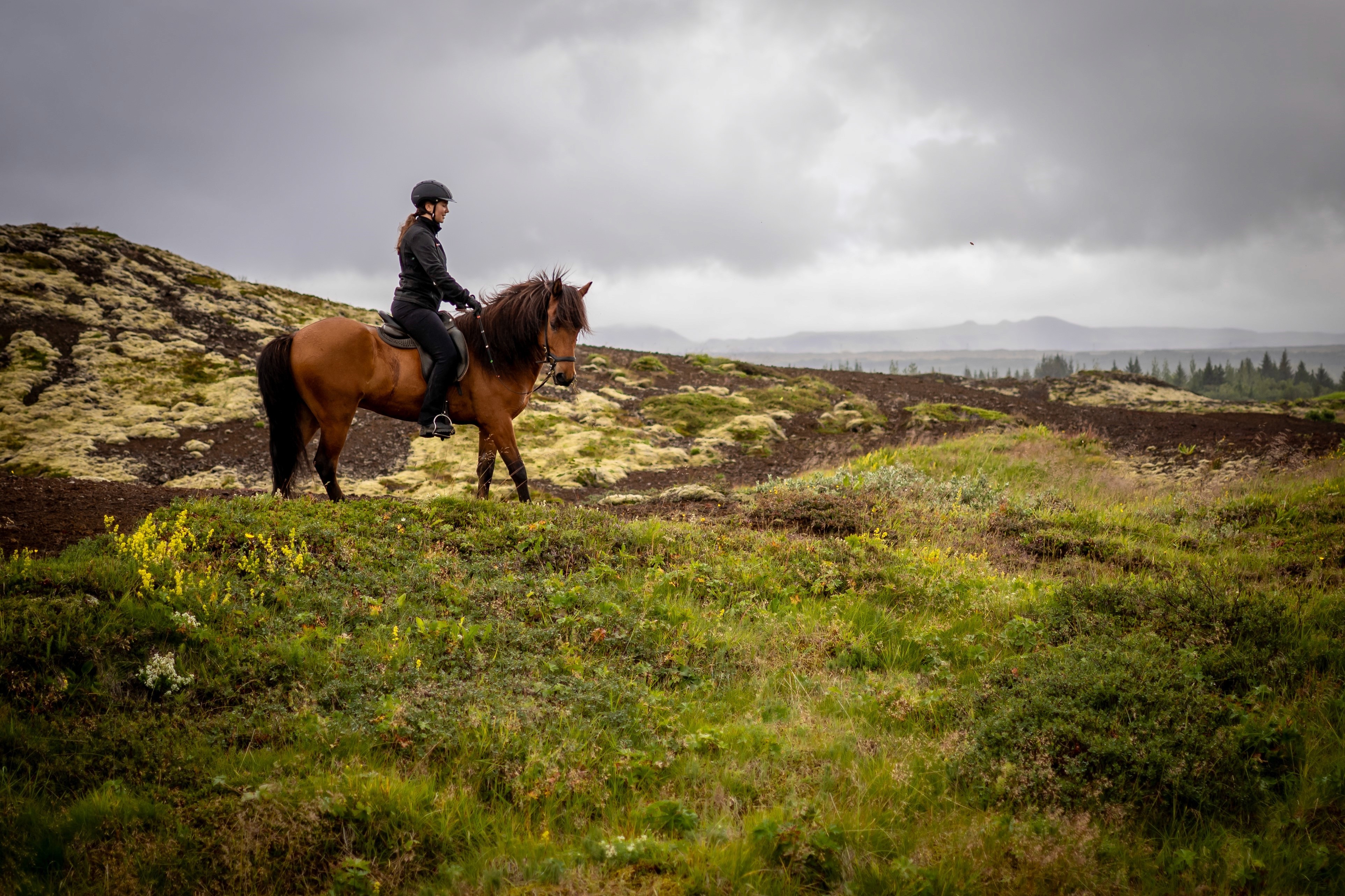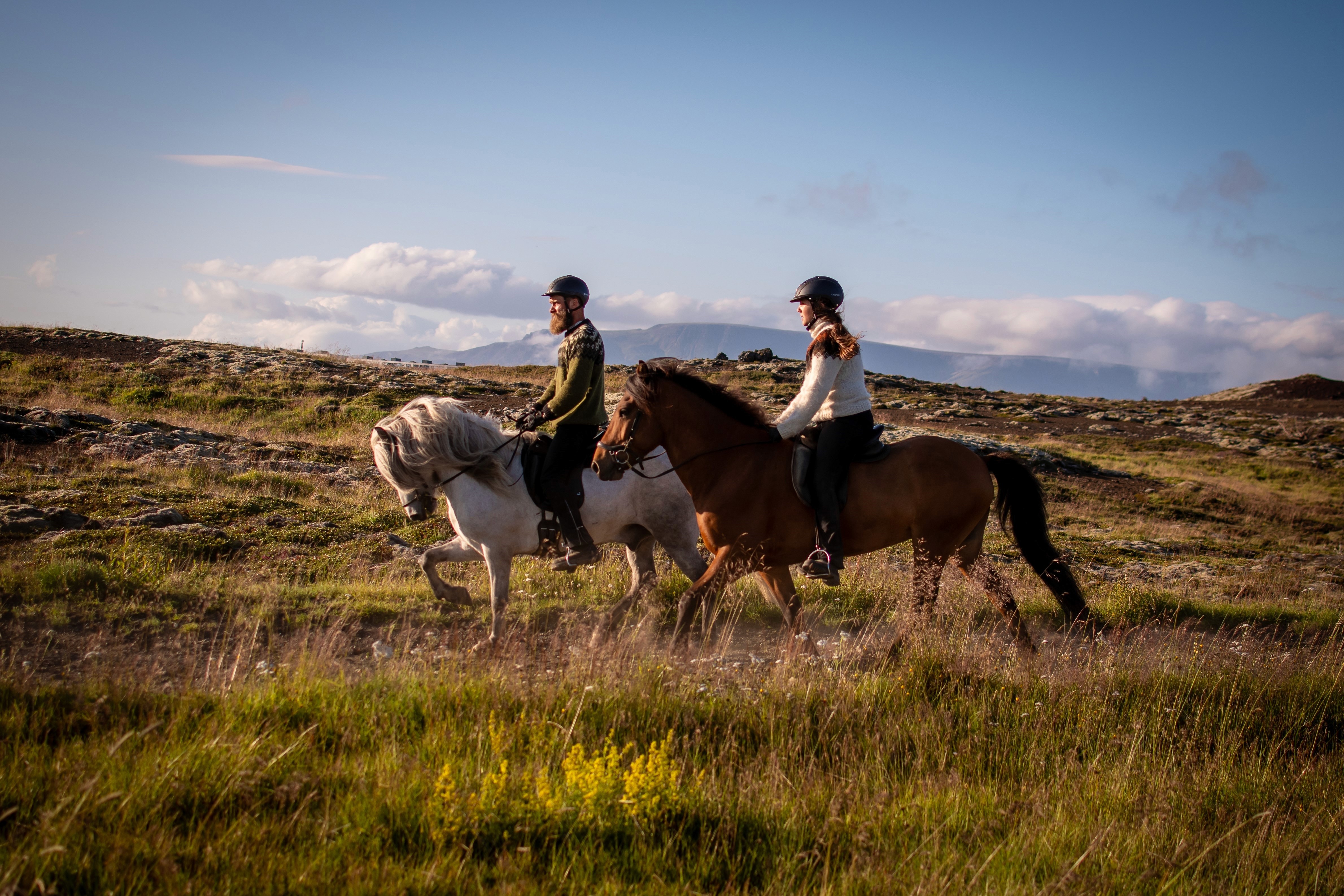 Enjoy a fully private one-hour ride through the quiet landscapes of Hólmsheiði, from lupin fields to the striking Red Hills of Rauðhólar. Ideal for riders who want a personal, peaceful experience with plenty of time to connect with their horse and take in the panoramic surroundings — just you, your guide, and Iceland’s raw beauty.