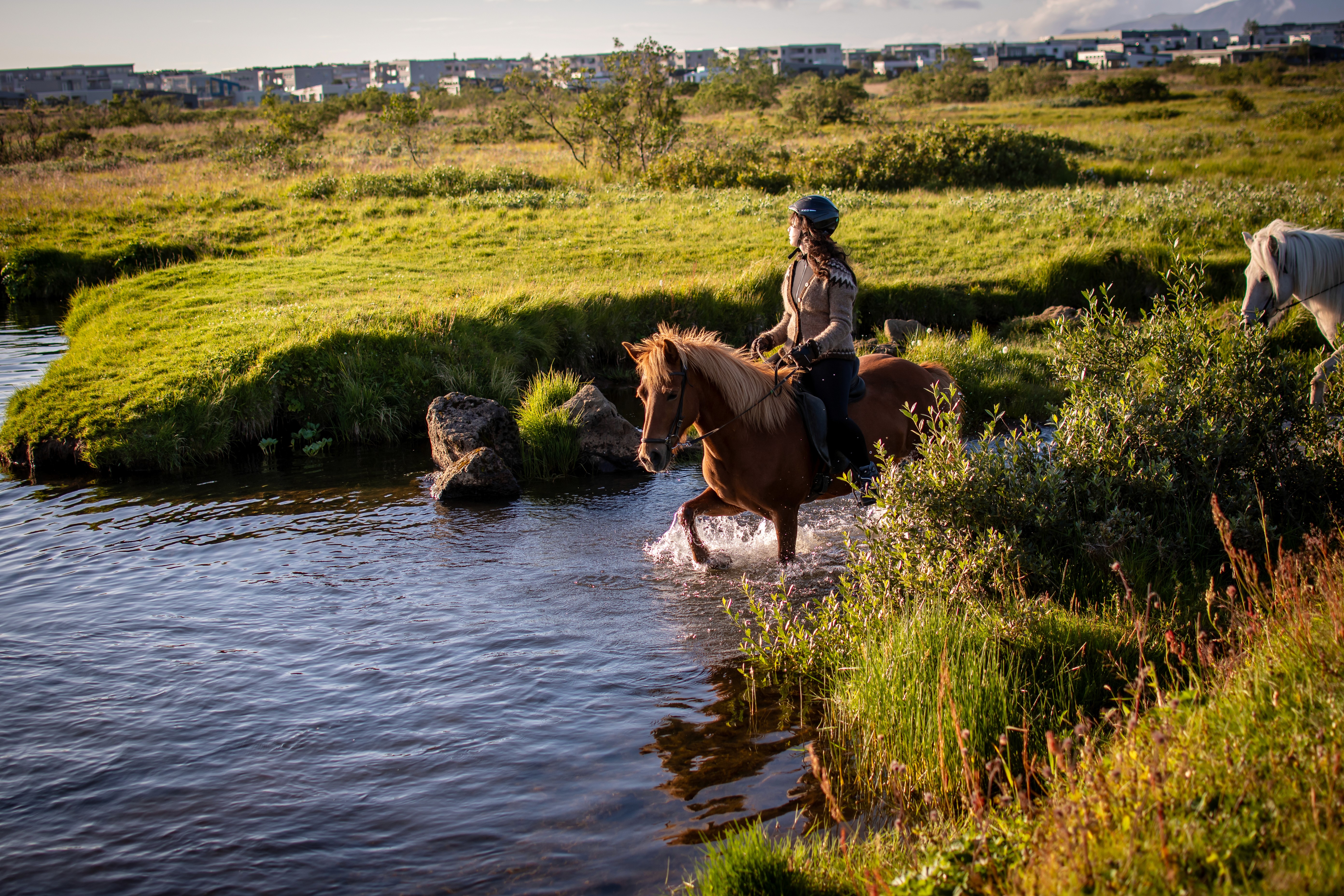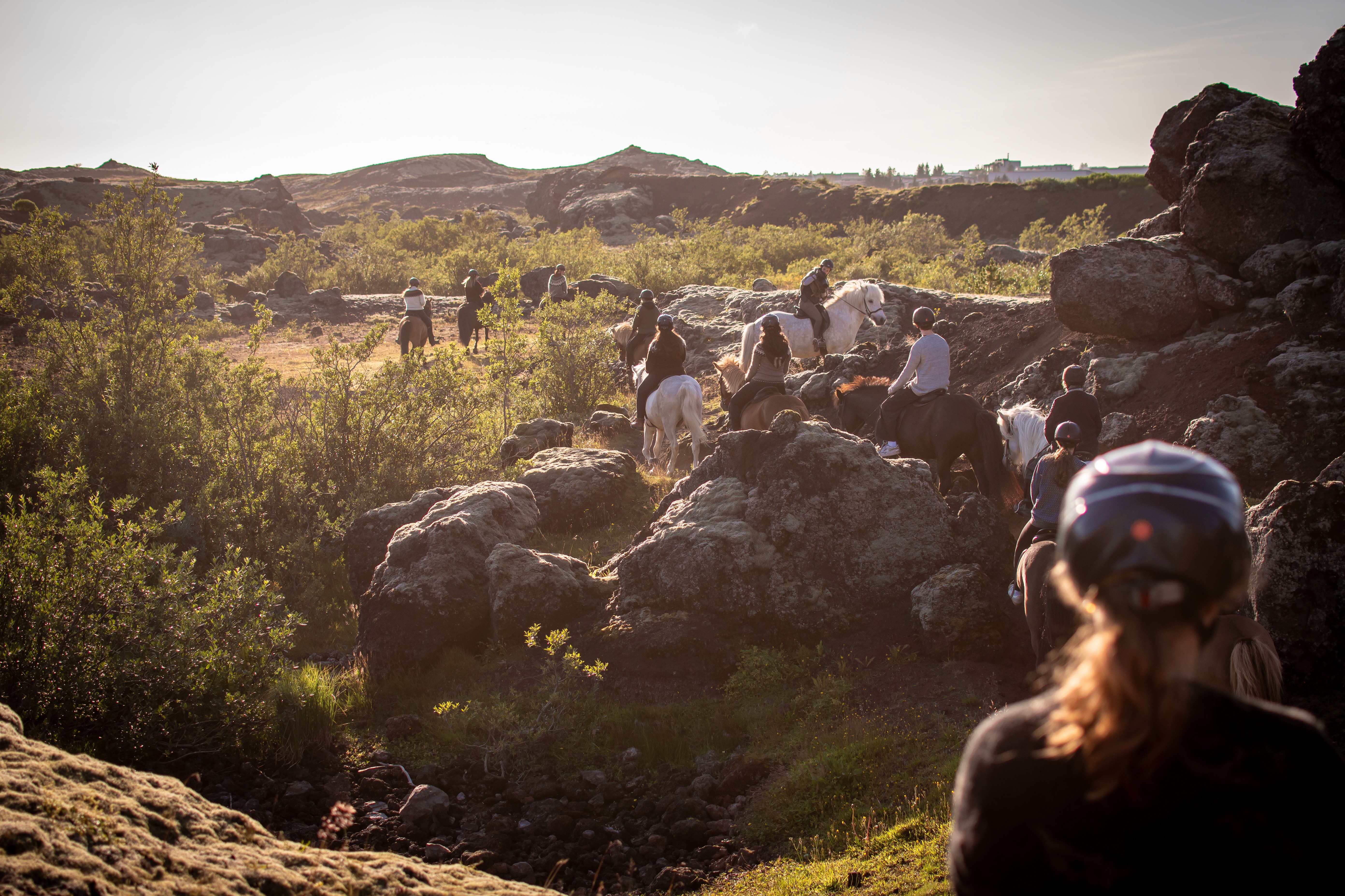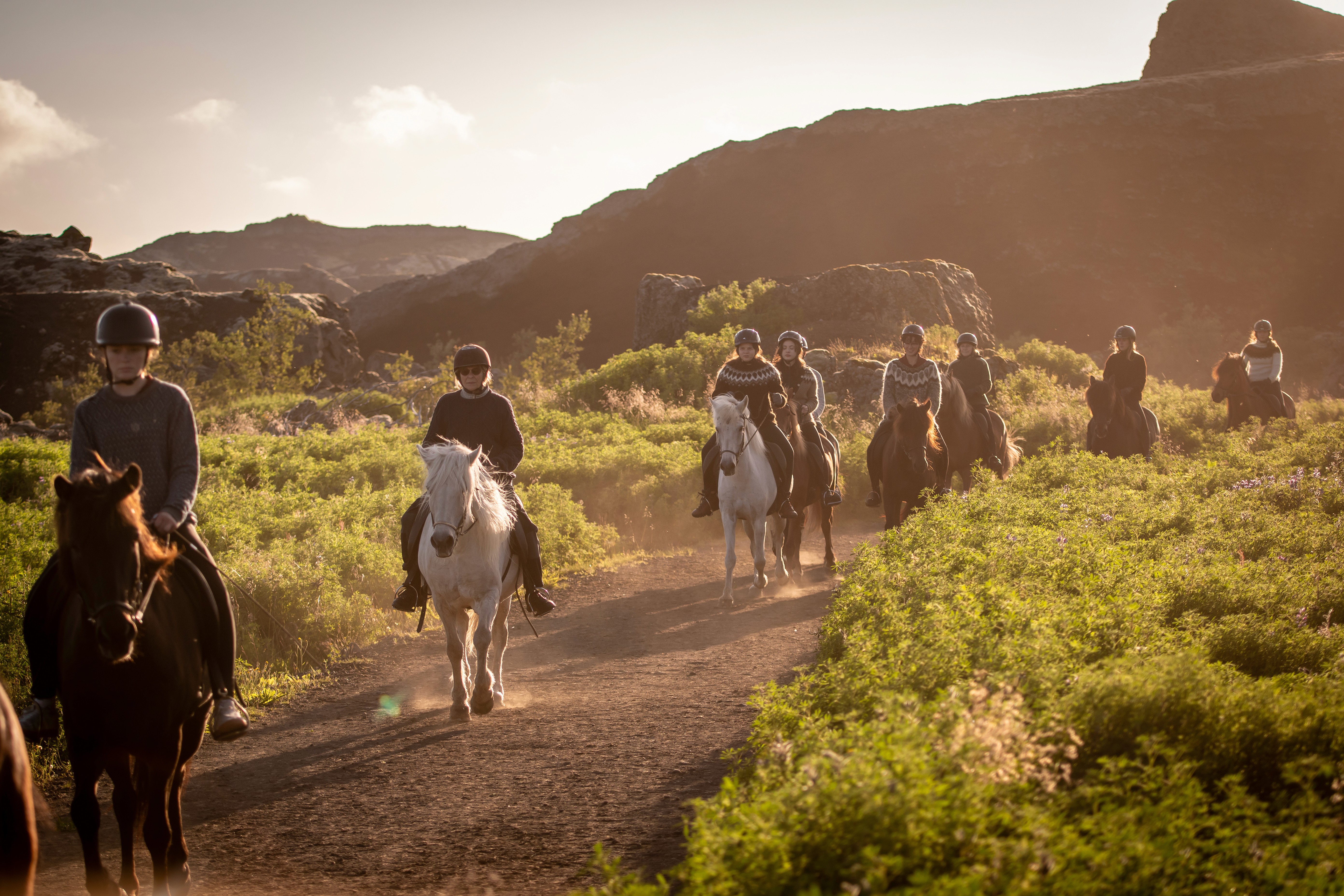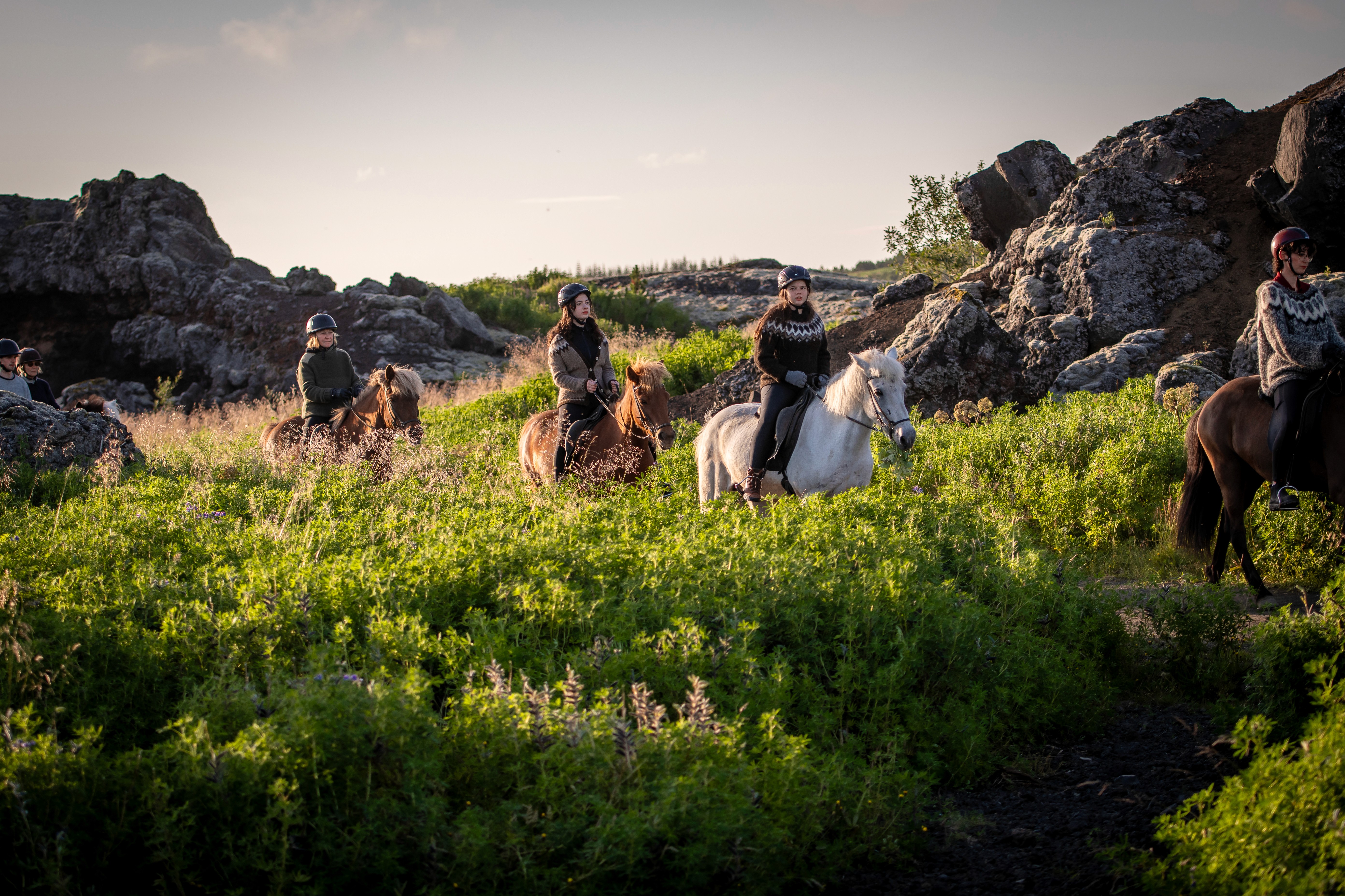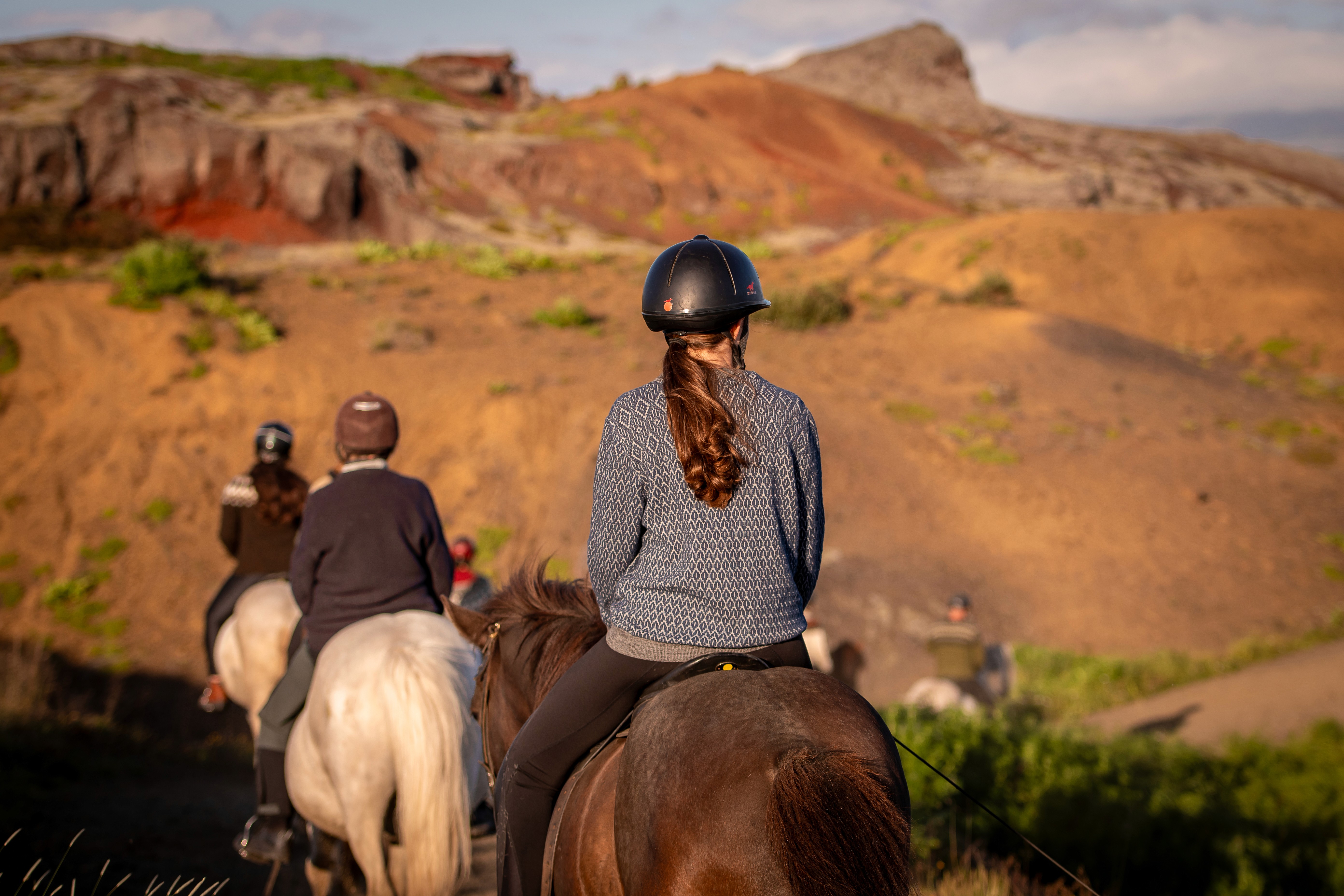 Riding under the soft evening sun is truly magical feel the peace of nature and listen to the birds sing, enjoy the company of our horses while they take you through fields of purple lupins, lushy forest and the spectacular Red Hills, a 5200 years old lava formations.